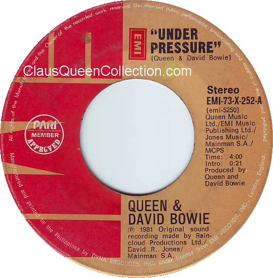 – 1981 – Under Pressure / Soul Brother – (Philippines EMI-73-X-252 – no p/s) LABEL