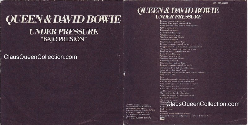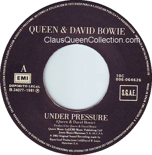 – 1981 – Under Pressure / Soul Brother – (Spain EMI 10C 006-064626) LABEL
