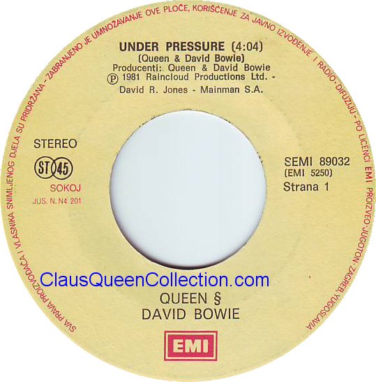 – 1981 – Under Pressure / Soul Brother – (Yugoslavia SEMI 89032) LABEL