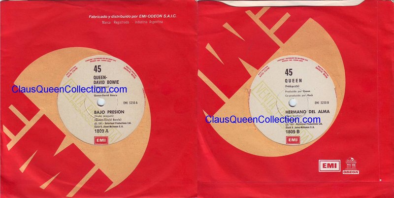 – 1981 – Under Pressure / Soul Brother – (Argentina EMI 1809 – promo – no p/s) LABEL