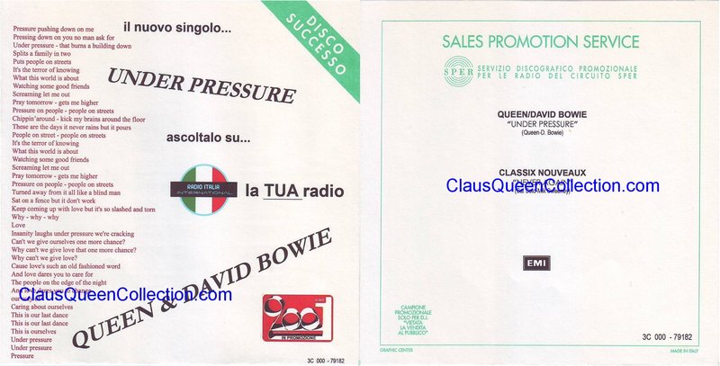 – 1981 – Under Pressure / Never Again (Classix N.) – (Italy EMI 3C 000-79182 – JB – Sper sleeve) LABEL