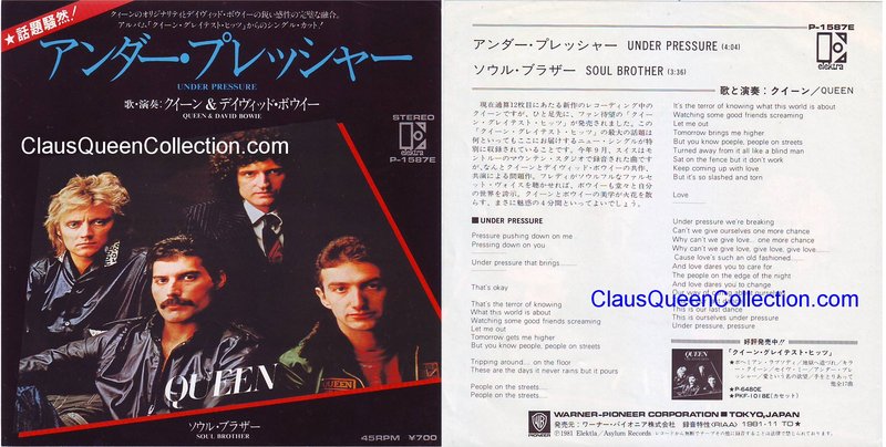 – 1981 – Under Pressure / Soul Brother – (Japan Elektra P-1587E) LABEL