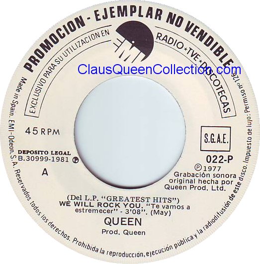 – 1981 – We Will Rock You / Bohemian Rhapsody – (Spain EMI B.30999-1981 – promo no p/s) LABEL
