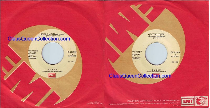 – 1982 – Back Chat / Staying Power – (Perù EMI 01.21.2029 – no p/s) LABEL