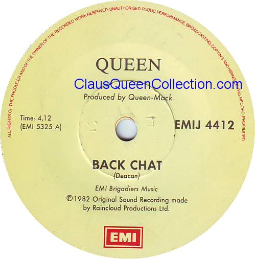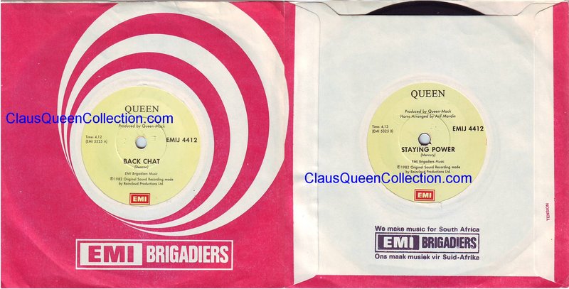 – 1982 – Back Chat / Staying Power – (South Africa EMIJ 4412 – no p/s) LABEL