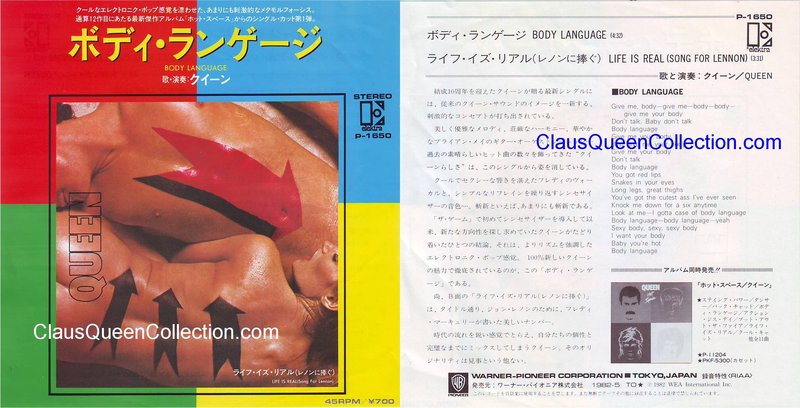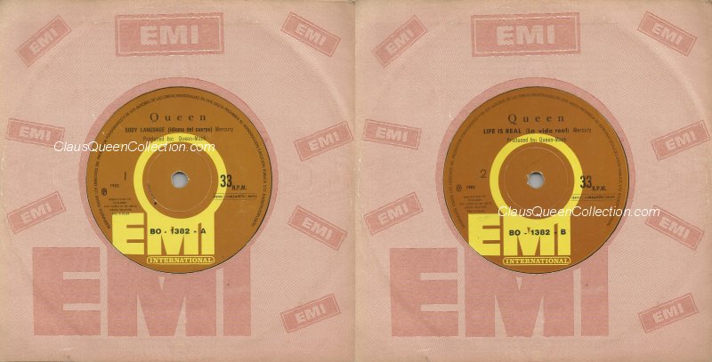 – 1982 – Body Language / Life Is Real – (Spain EMI 10C 006-64788 – promo) LABEL