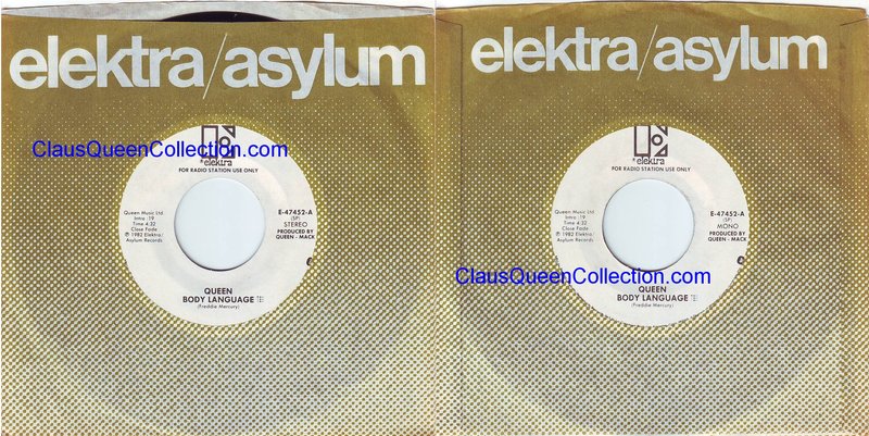 – 1982 – Body Language (stereo) / Body Language (mono) – (USA E-47452 promo no p/s) LABEL