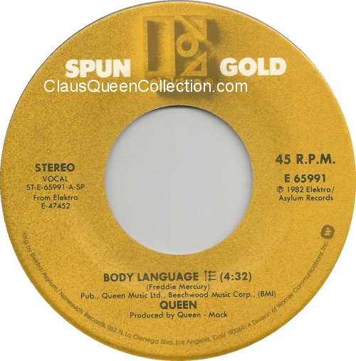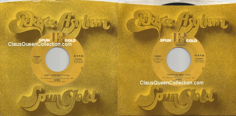 – 1982 – Body Language / Calling All Girls – (USA E 65991 – Spun Gold no p/s) LABEL