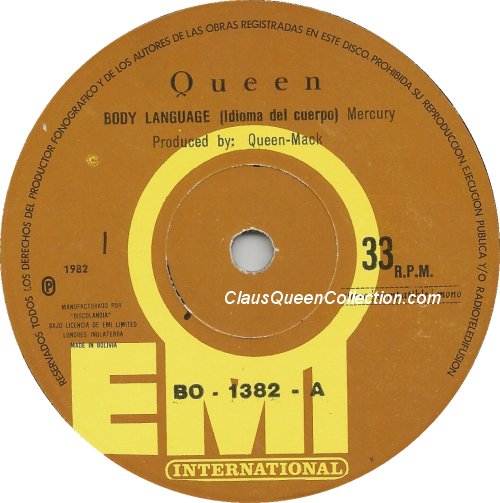 – 1982 – Body Language / Life Is Real – (Bolivia EMI BO-1382 – no p/s) LABEL