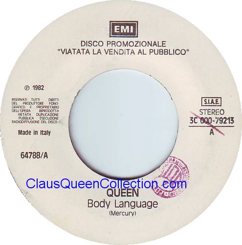 – 1982 – Body Language / Life Is Real – (Italy EMI 3C 006-64788 ) LABEL