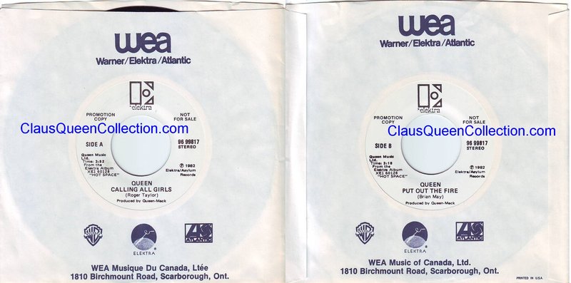 – 1982 – Calling All Girls / Put Out The Fire – (Canada 96 99817 – promo no p/s) LABEL