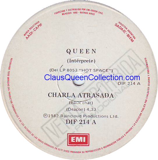 – 1984 – Radio Ga Ga / I Go Crazy – (Argentina EMI 1860 – promo no p/s) LABEL