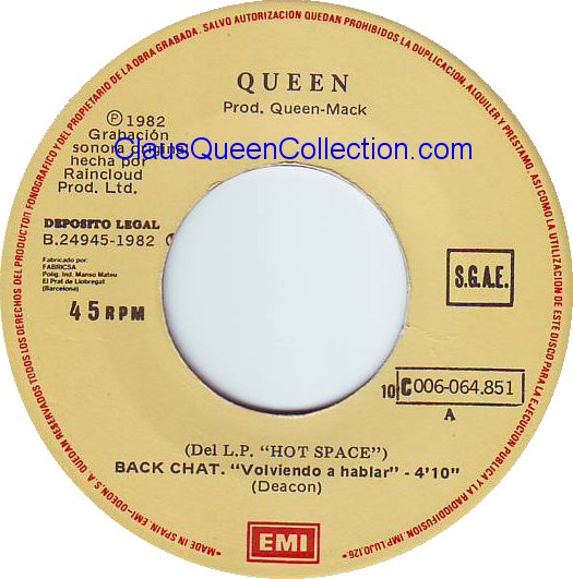 – 1982 – Back Chat / Staying Power – (Spain EMI 10C 006-064851) LABEL