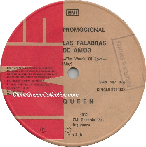 – 1982 – Las Palabras De Amor / Las Palabras De Amor – (Chile EMA 797 – promo no p/s) LABEL