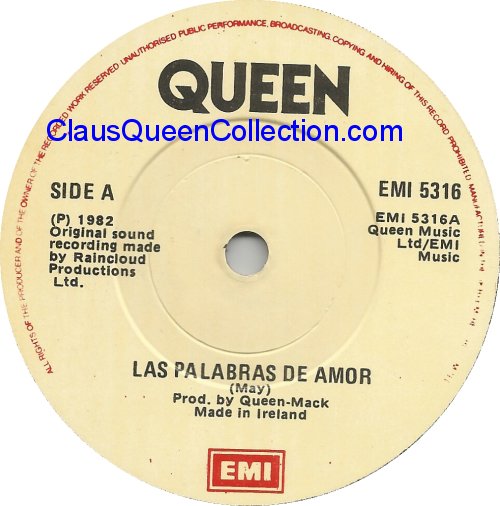 – 1982 – Las Palabras De Amor / Cool Cat – (Ireland EMI 5316 – no p/s) LABEL