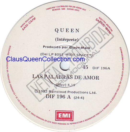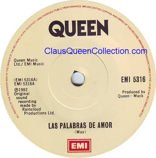 – 1982 – Las Palabras De Amor / Cool Cat – (UK EMI 5316) LABEL
