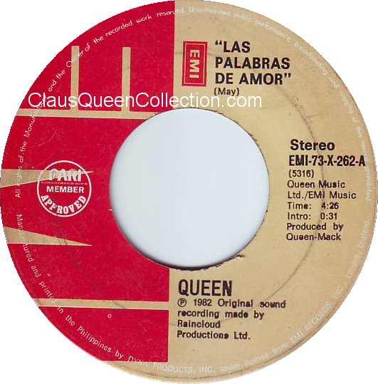 – 1982 – Las Palabras De Amor / Cool Cat – (Philippines EMI 73-X-262 – no p/s) LABEL
