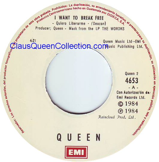 – 1984 – I Want To Break Free / Machines (or back to humans) – (Guatemala EMI 4653 – no p/s) LABEL