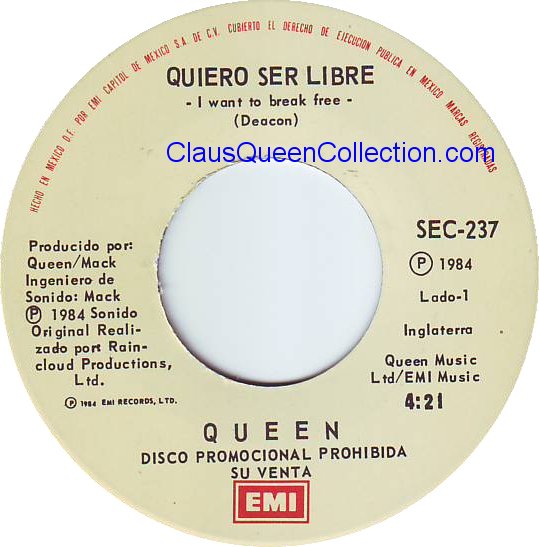 – 1984 – I Want To Break Free / I Want To Break Free – (Mexico EMI SEC-237 – promo no p/s) LABEL
