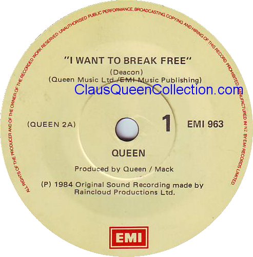 – 1984 – I Want To Break Free / Machines (or back to humans) – (New Zeland EMI 963 – no p/s) LABEL