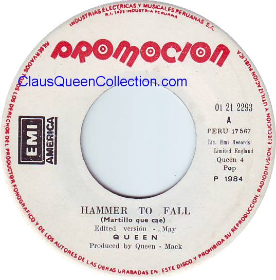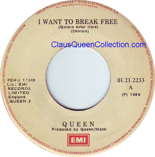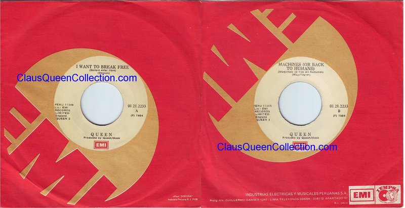 – 1984 – I Want To Break Free / Machines (or back t.) – (Perù EMI 01.21.100097 – promo no p/s) LABEL