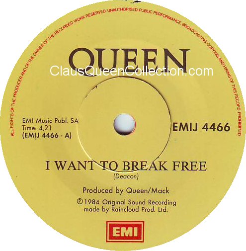 – 1984 – I Want To Break Free / Machines (or back to humans) – (South Africa EMIJ 4466) LABEL