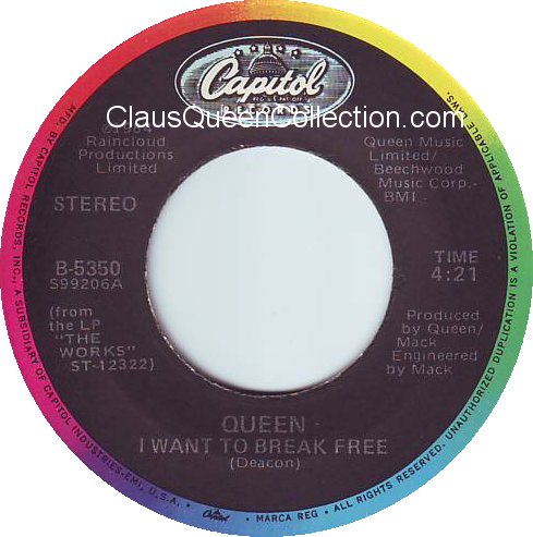 – 1984 – I Want To Break Free / Machines (or back to h.) – (Brian on cover) – (USA B-5350) LABEL