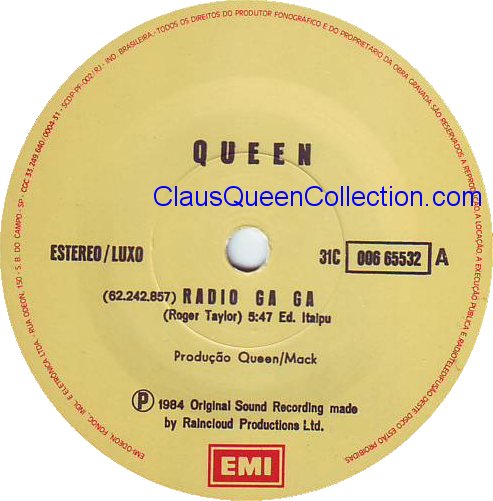 – 1984 – Radio Ga Ga / I Go Crazy – (Brazil EMI 31C 006-65532) LABEL