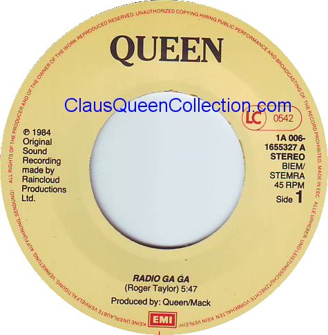 – 1984 – Radio Ga Ga / I Go Crazy – (Germany EMI 1C 006-1655327) LABEL