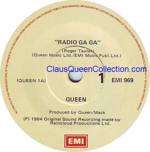– 1984 – Radio Ga Ga / I Go Crazy – (UK EMI QUEEN 1) LABEL