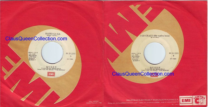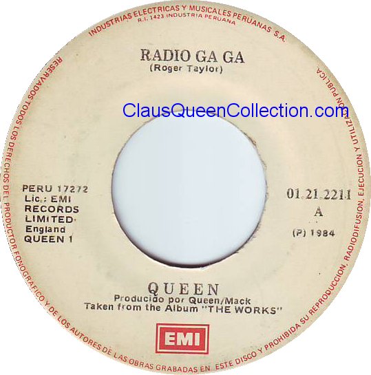 – 1984 – Radio Ga Ga / I Go Crazy – (Perù EMI 01.21.2211 – no p/s) LABEL