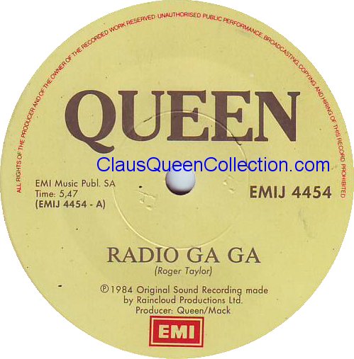 – 1984 – Radio Ga Ga / I Go Crazy – (South Africa EMIJ 4454) LABEL