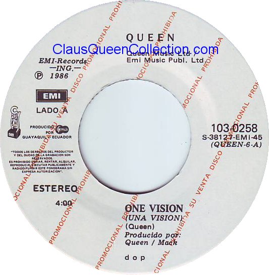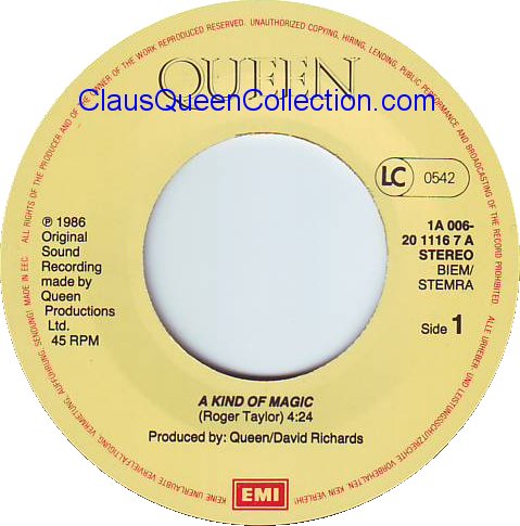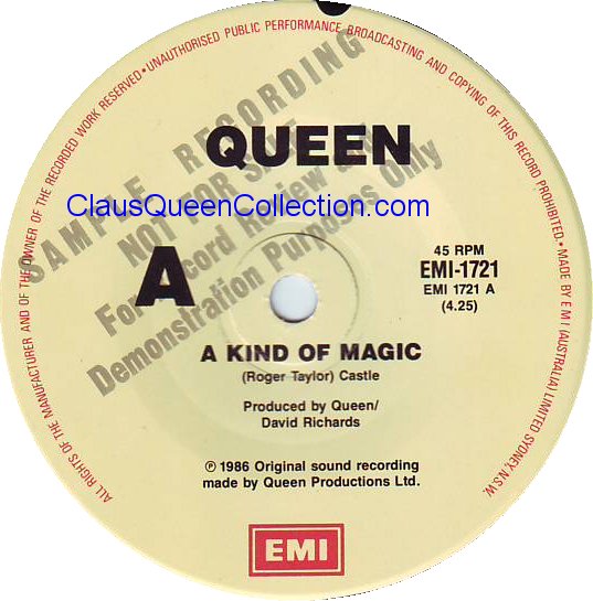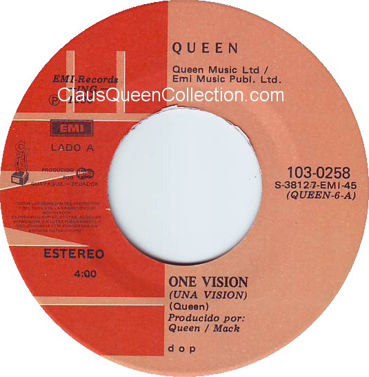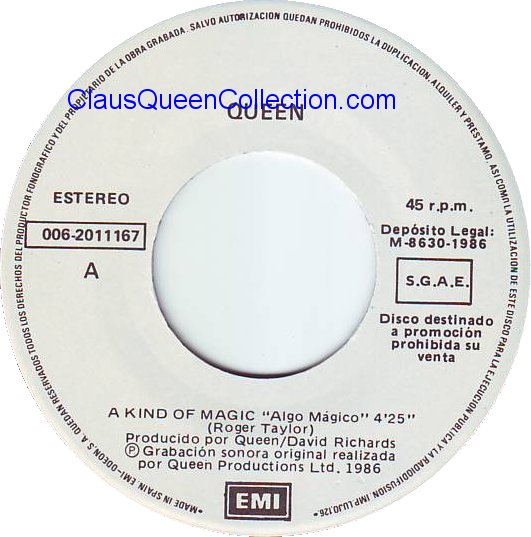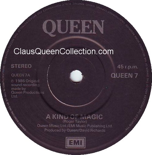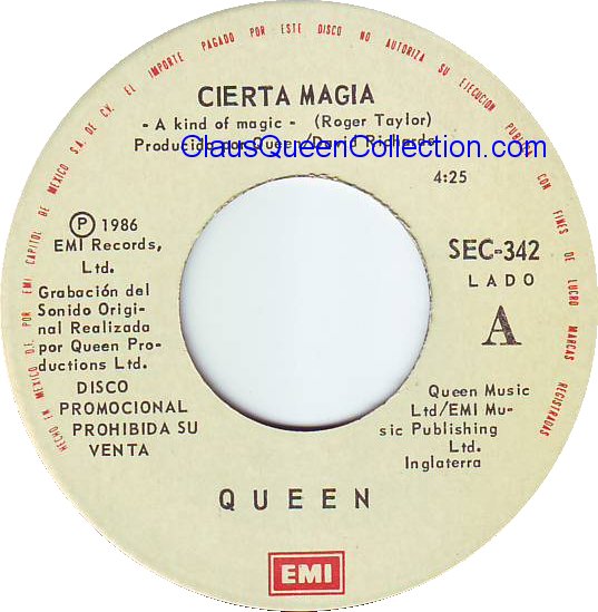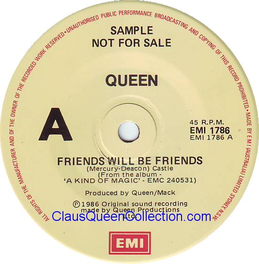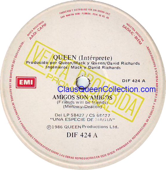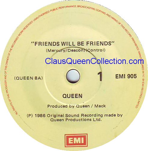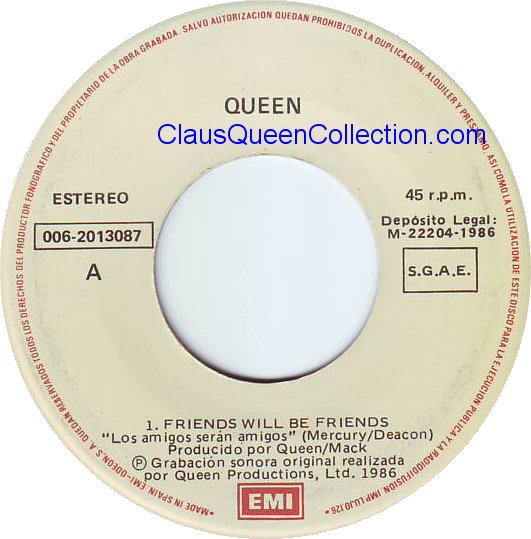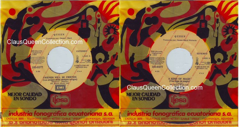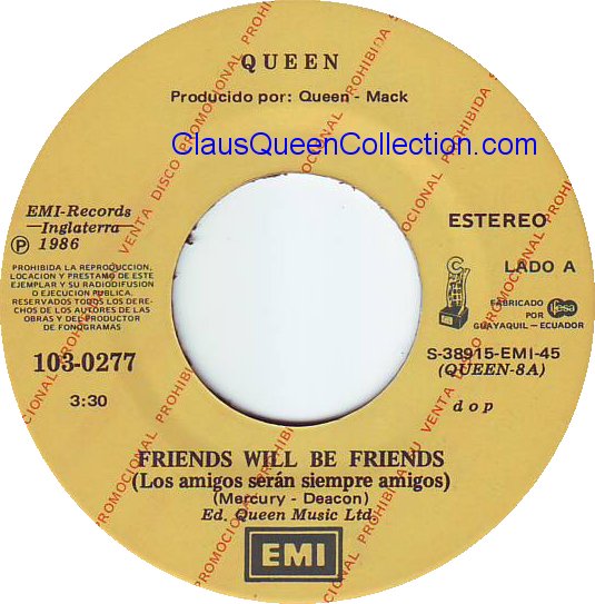 – 1986 – Friends Will Be Friends / A Kind Of Magic – (Ecuador EMI 103-0277 – promo no p/s) LABEL
