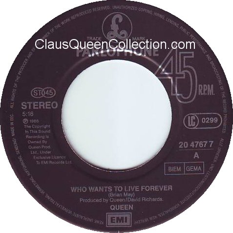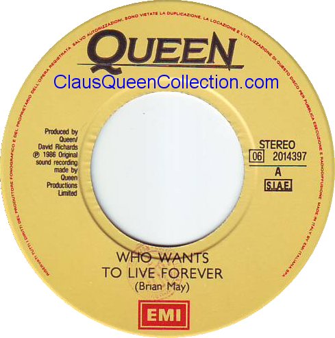 – 1986 – Who Wants To Live Forever / Killer Queen – (Italy EMI 2014397) LABEL