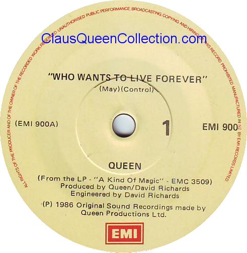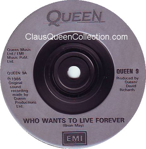 – 1986 – Who Wants To Live Forever / Killer Queen – (UK QUEEN 9) LABEL