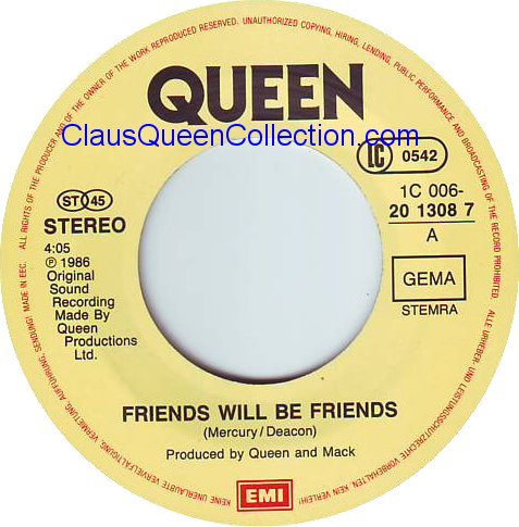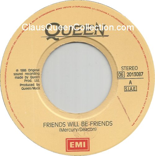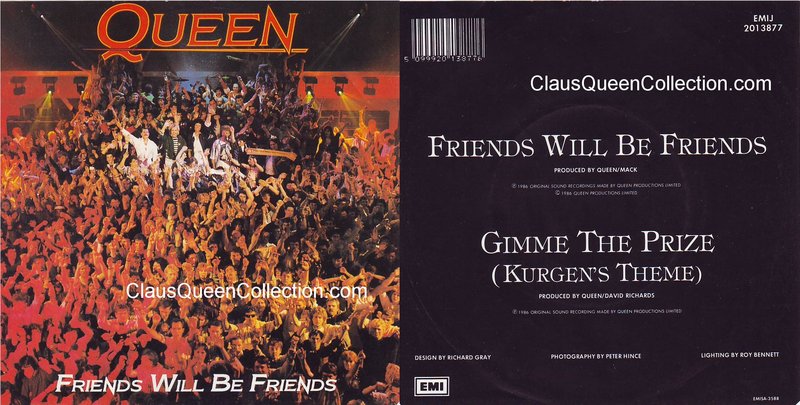 – 1986 – Friends Will Be Friends / Gimme The Prize – (South Africa EMIJ 2013877) LABEL