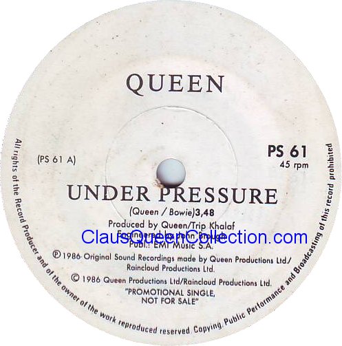 – 1986 – Under Pressure / WWRY / FWBF / WATC “from Live M” – (UK EMI PSR-492 – promo only) LABEL