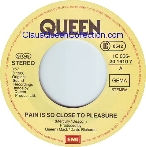 – 1986 – Pain Is So Close To Pleasure / Don’t Lose Your Head – (Germany EMI 1C 006-2016107) LABEL