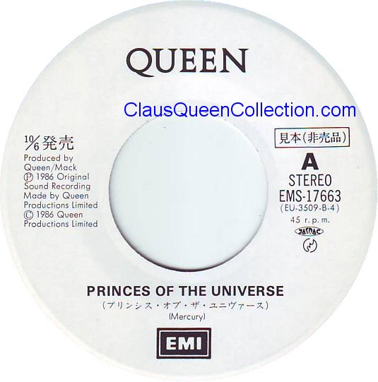 – 1986 – Princes Of The Universe / Who Wants To Live Forever – (Japan EMI EMS-17663) LABEL