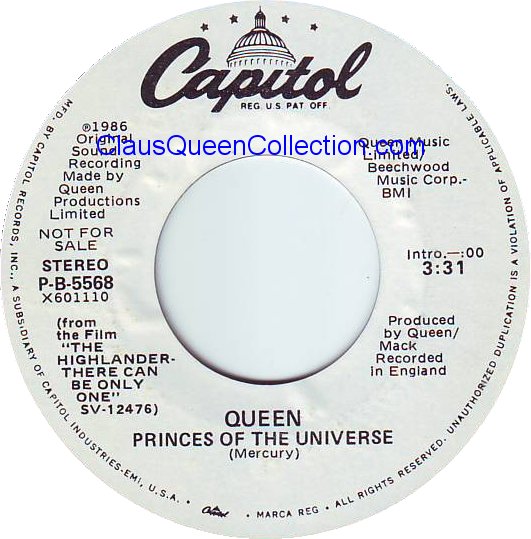 – 1986 – Princes Of The Universe / Princes Of The U. – (USA Capitol P-B-5568 promo no p/s) LABEL