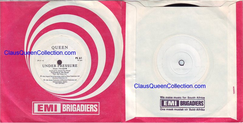 – 1986 – Under Pressure “from Live Magic” – (South Africa EMI PS 61 – 1 sided promo only – no p/s) LABEL