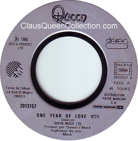 – 1986 – One Year Of Love / Gimme The Prize – (France EMI 2013157 – Juke Box) LABEL
