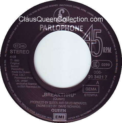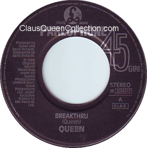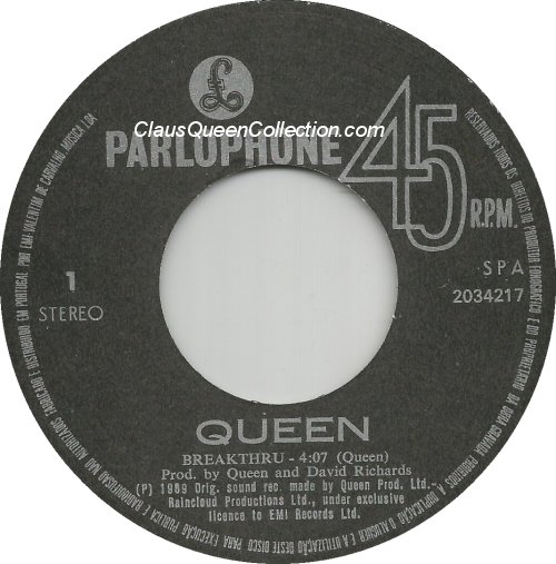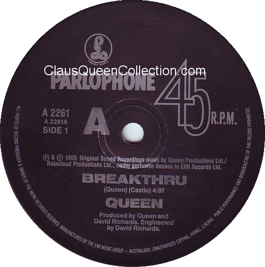 – 1989 – Breakthru / Stealin’ – (UK QUEEN 11) LABEL