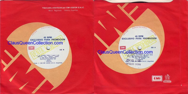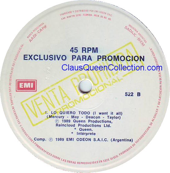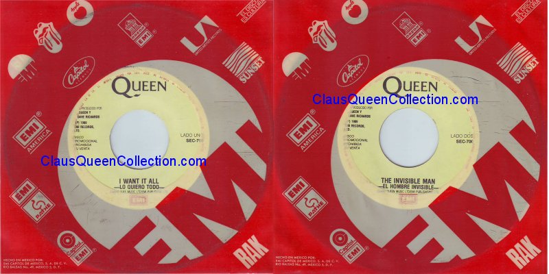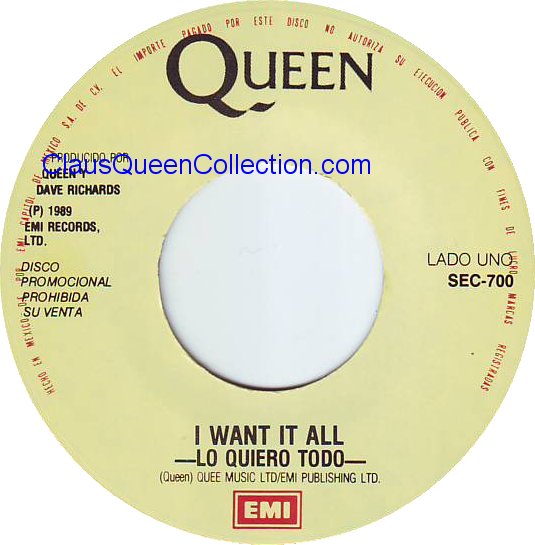 – 1989 – I Want It All / The Invisible Man – (Mexico EMI SEC-700 – promo no p/s) LABEL