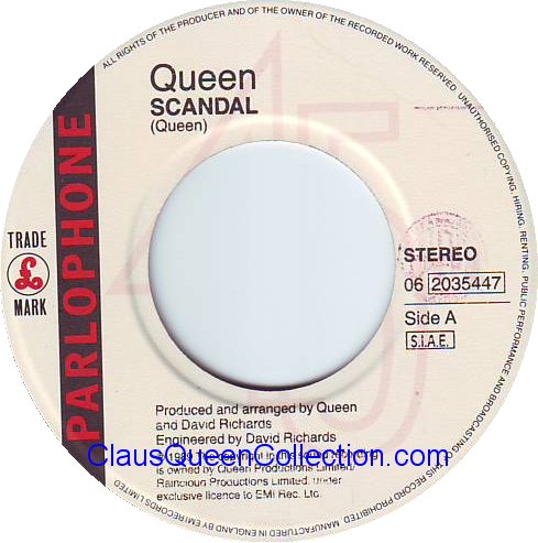 – 1989 – Scandal / My Life Has Been Saved – (UK QUEEN 14) LABEL