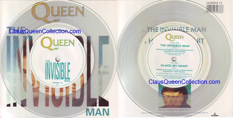 – 1989 – The Invisible Man / Hijack My Heart – (UK QUEENX 12 – clear vinyl) LABEL