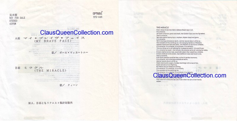 – 1989 – My Brave Face (P.McCartney) / The Miracle – (Japan YPS-048 – promo only) LABEL
