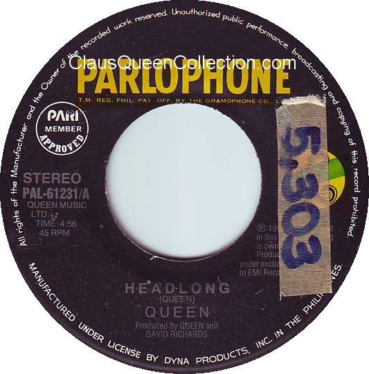 – 1991 – Headlong / The Hitman – (Philippines Parlophone PAL-61231 – no p/s) LABEL