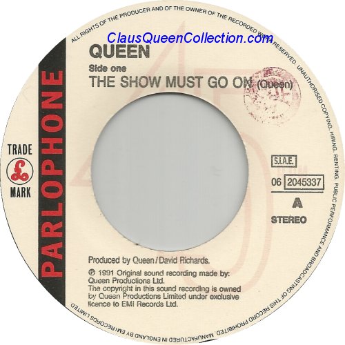 – 1991 – The Show Must Go On / Keep Yourself Alive – (Italy EMI 06 2045337) LABEL