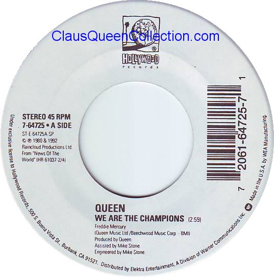 – 1992 – We Are The Champions / These Are The Days Of Our Lives – (USA 7-64725 no p/s) LABEL